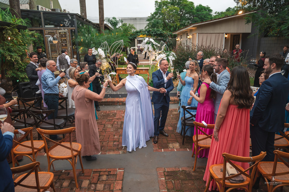 A cerimônia foi marcada por emoção verdadeira. Daquelas que envolvem todos ao redor e fazem o tempo desacelerar por alguns instantes. Já na recepção, a energia tomou conta. Abraços apertados, sorrisos espontâneos e uma pista cheia do início ao fim.